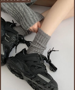 Set 5 Đôi Tất Vớ Nam Nữ Cổ Cao Dệt Kim Phối Gân Mềm Co Giãn TV061