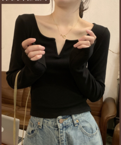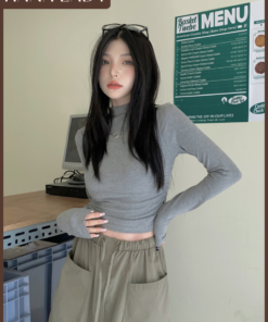 Áo Thun Gân Dài Tay Thu Đông Ôm Body Dáng Ngắn Có Chiết Eo Tôn Dáng Cổ Cao Giữ Nhiệt AO011