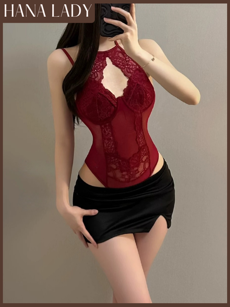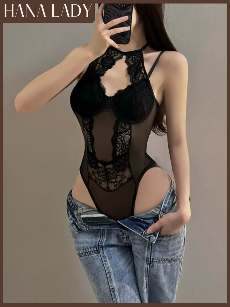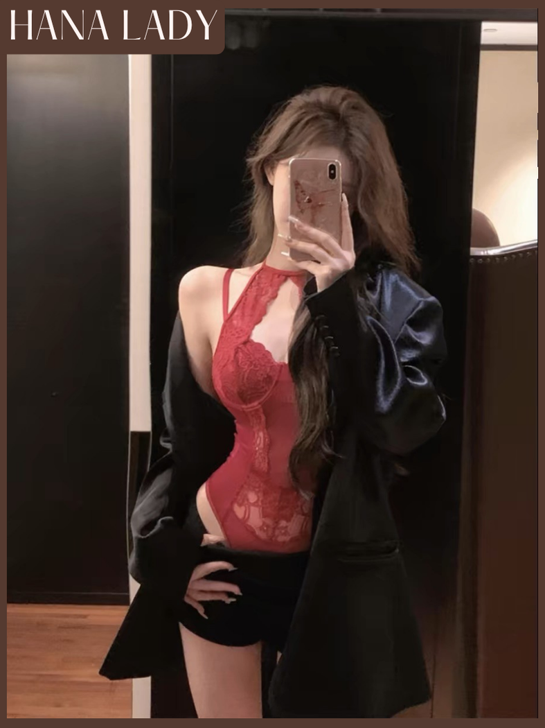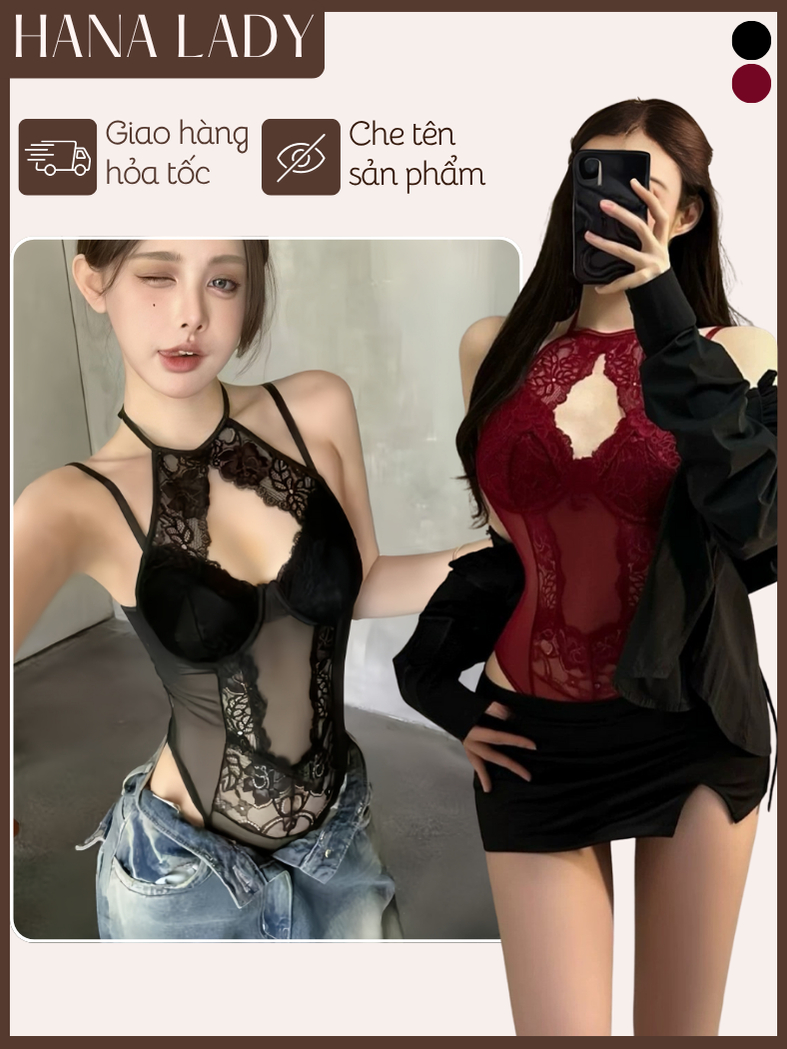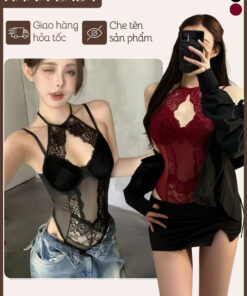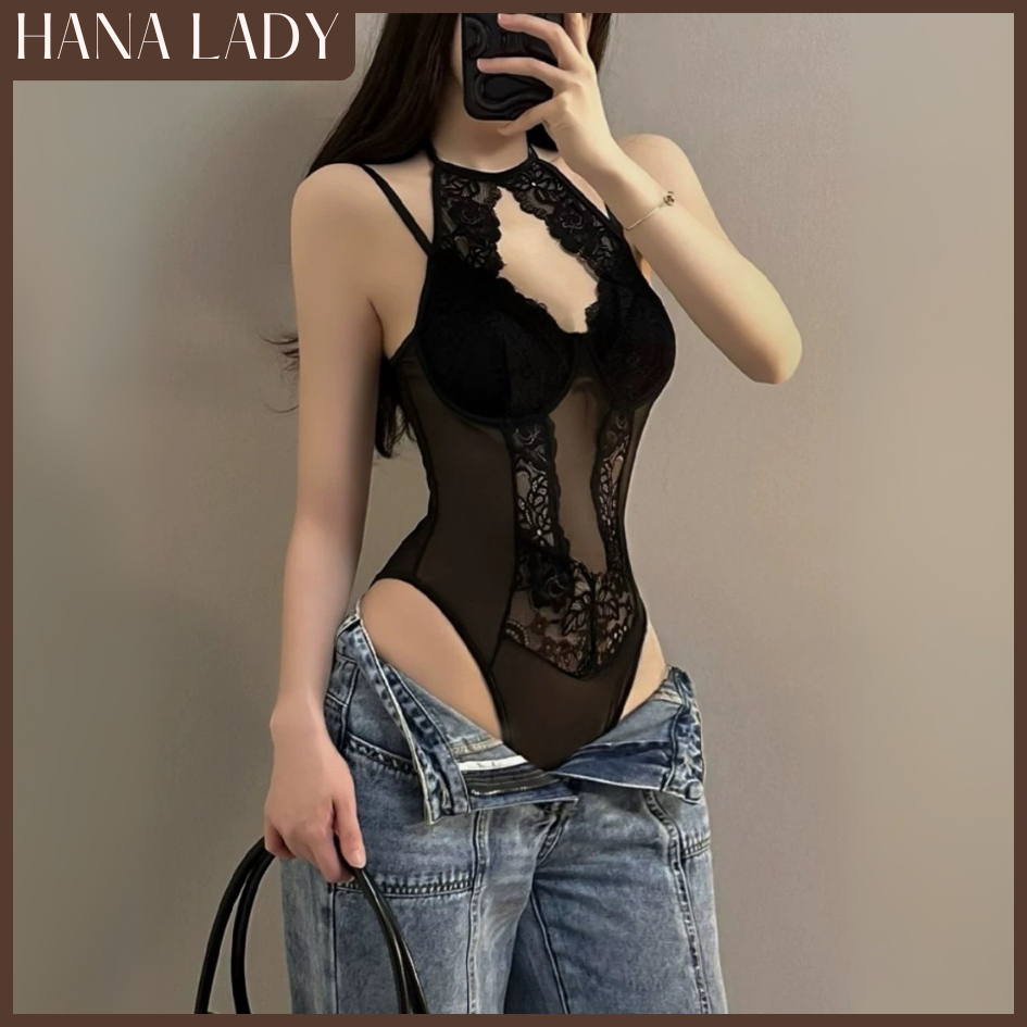 Bodysuit Ren Hoa – Áo Liền Thân Cổ Yếm Chất Ren Phong Cách Retro VN670