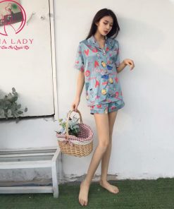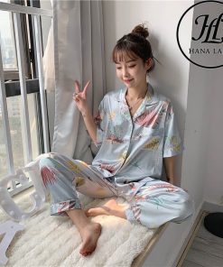 Pyjama lụa phối ren ống xẻ cao cấp PJ506
