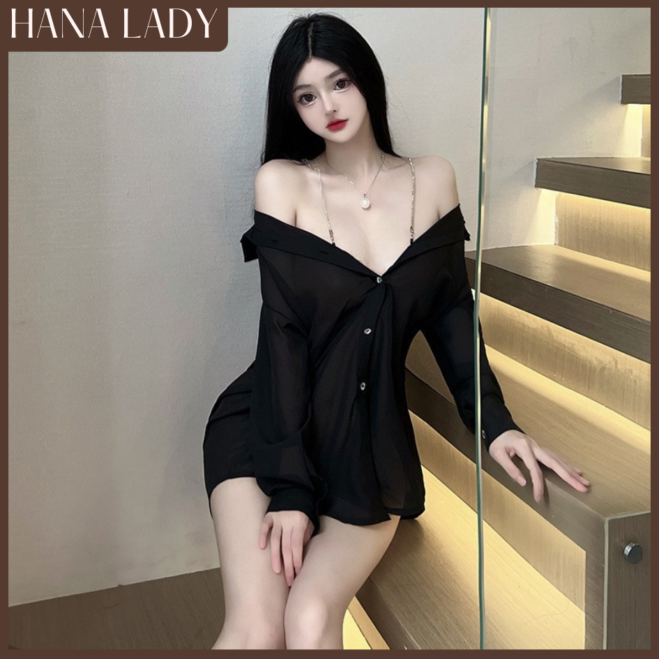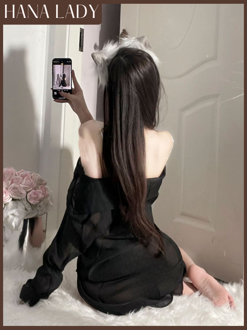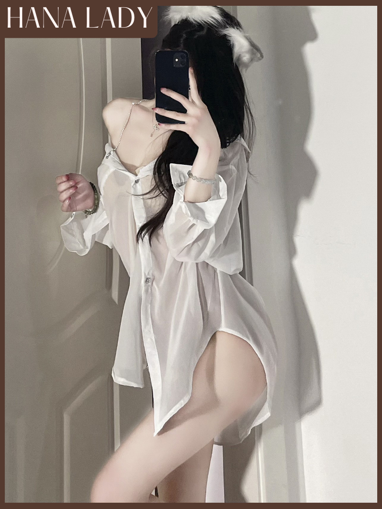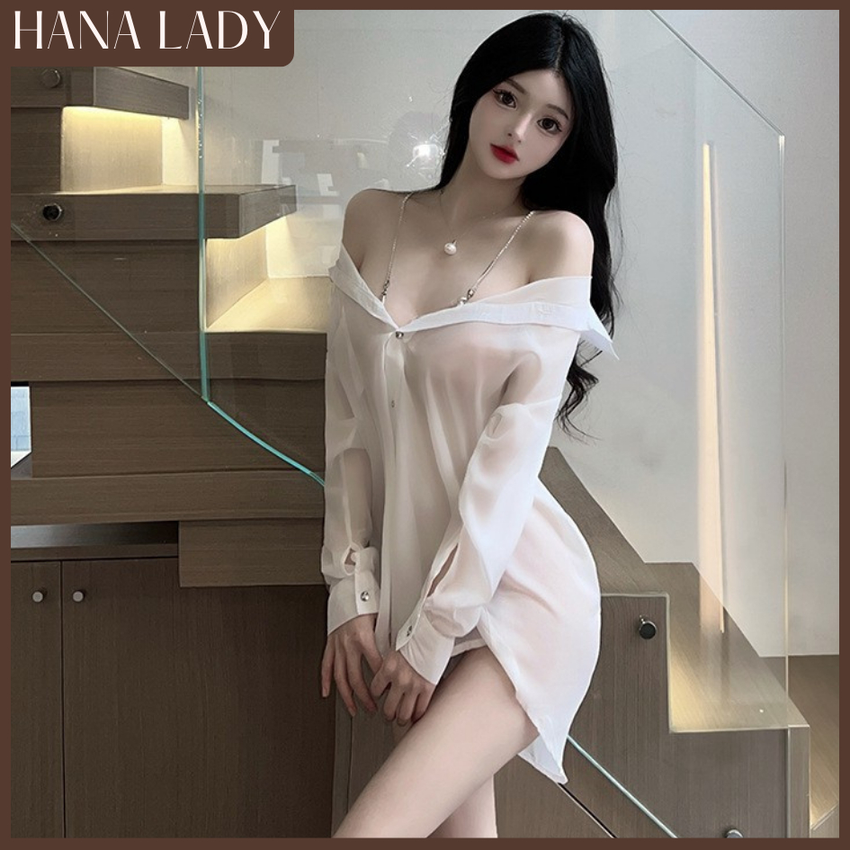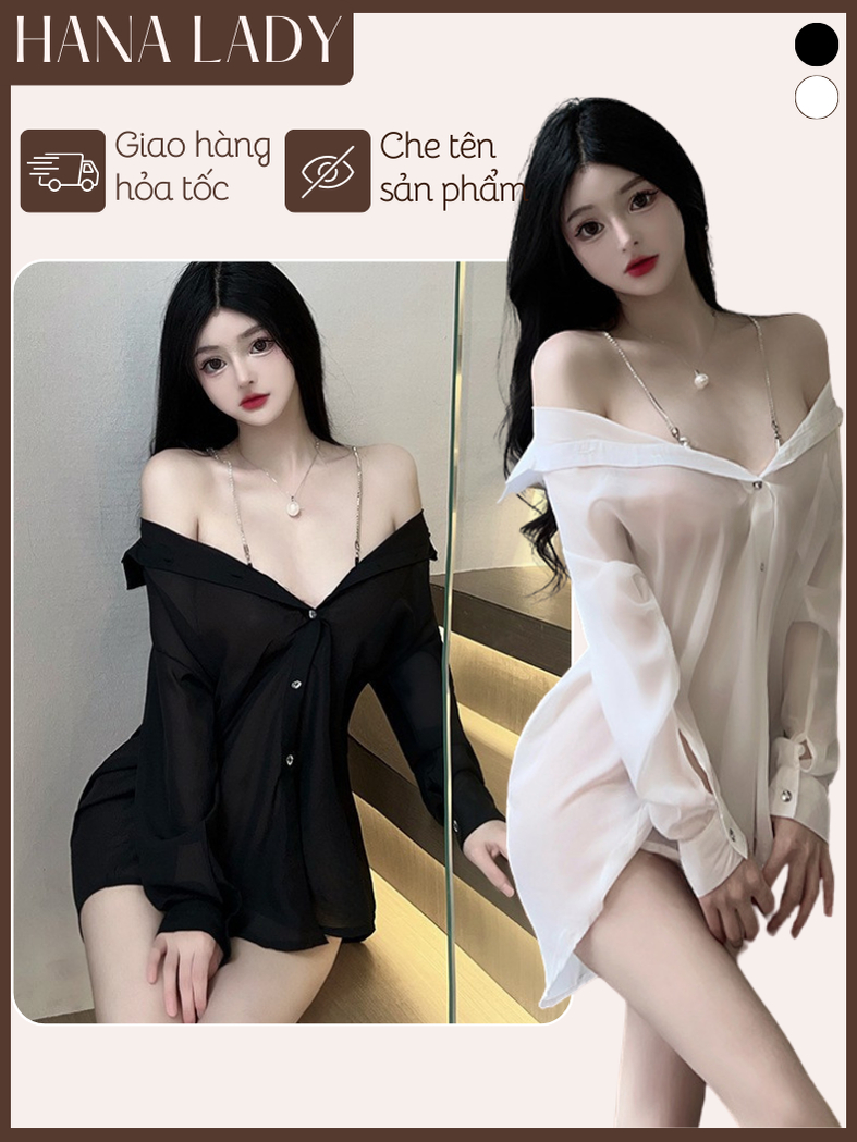 Váy Ngủ Voan – Áo Sơ Mi Mặc Nhà, Áo Ngủ Trễ Vai Voan Mỏng Kèm Quần VN672